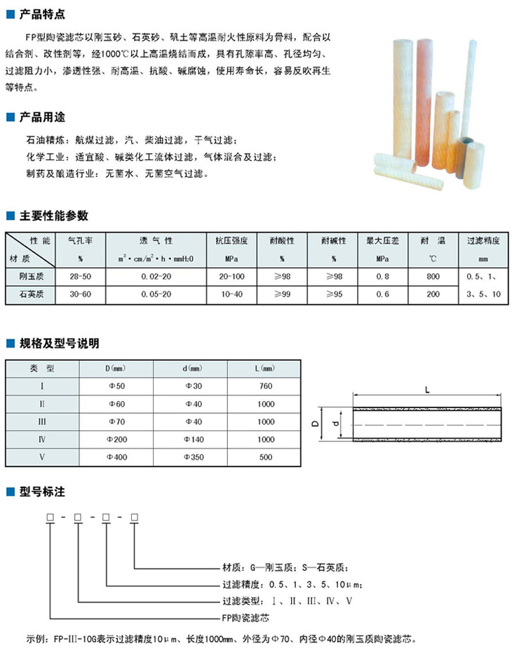 FP型陶瓷滤芯